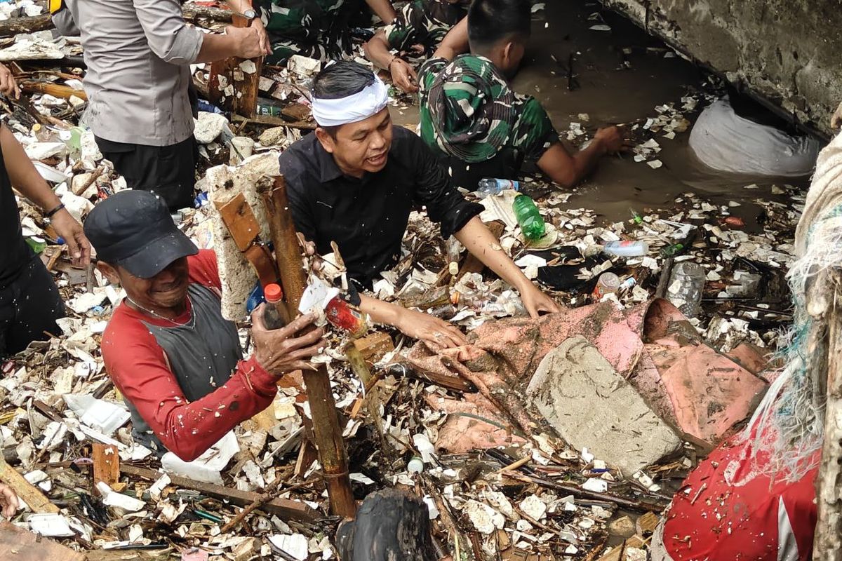 “Huluna rusak, hilirna rusak, (padahal) aparat loba. Leuweung dirarusak, ngajaredog wae, malah dibarekingan! (hulunya rusak, hilirnya rusak padahal (punya) banyak aparat. Hutan dirusak, diam saja, malah dibekingi!” ungkap dia. Tak berapa lama Dedi Mulyadi berinisiatif untuk langsung turun ke sungai. Bersama warga, ia mengeluarkan sampah yang menyumbat. Bahkan Dedi masuk ke dalam sungai setinggi dadanya untuk mengambil sampah-sampah tersebut.