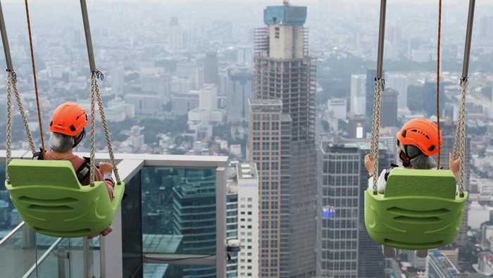Ada juga wahana ayunan yang disebut UPswing. Pengunjung akan diajak bermain ayunan dari atas ketinggian yang bikin jantung berdebar kencang. Sebelum menaiki wahana ini, pengunjung wajib memakai safety gear seperti helm demi keamanan dan kenyamanan.